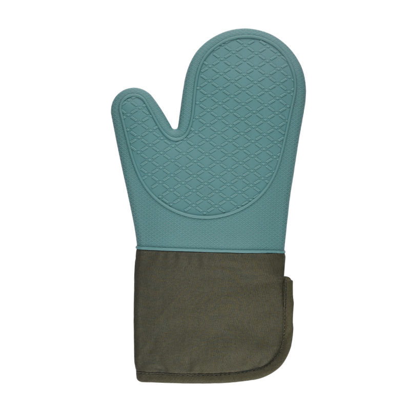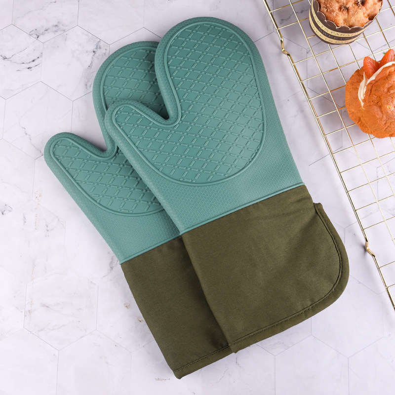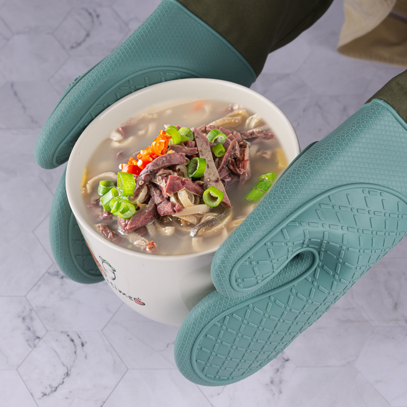 BPA-Free Soft Silicone Oven Mitts Heat Resistant and Waterproof Cooking Gloves Thick Cotton Lining